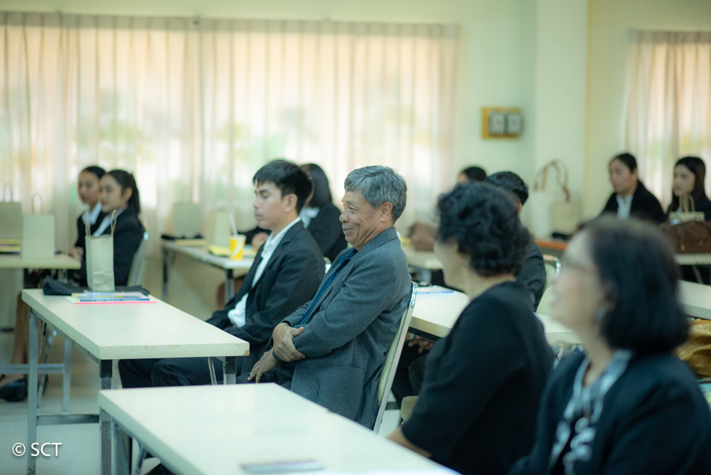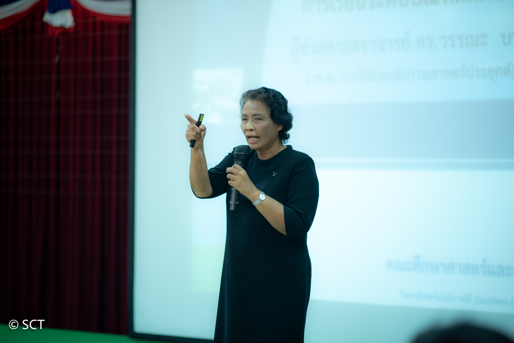 1 พฤศจิกายน 2568 ศาสตราจารย์เกียรติคุณ ดร.นิตย์ศรี แสงเดือน อธิการบดี วิทยาลัยเทคโนโลยีภาคใต้ SCT กล่าวต้อนรับ นักศึกษาใหม่ หลักสูตรประกาศนียบัตรบัณฑิตวิชาชีพครู ประจำปีการศึกษา 2568 ในโครงการปฐมนิเทศนักศึกษาใหม่ ณ ห้องประชุมพุทธรักษา วิทยาลัยเทคโนโลยีภาคใต้ SCT